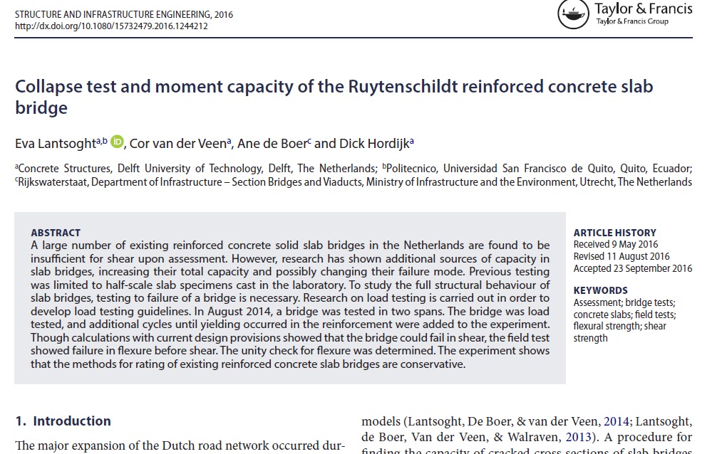 We recently published a paper in Structure and Infrastructure Engineering about the collapse test on the Ruytenschildt Bridge and the implications for the flexural assessment of reinforced concrete slab bridges.